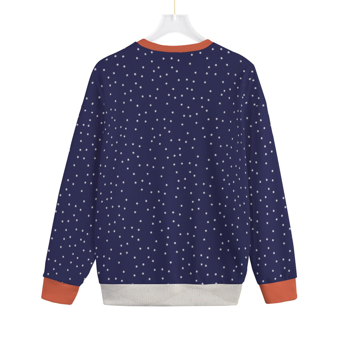Blending cozy cabin-core energy with eerie wilderness symbolism, this pullover is equal parts festive and foreboding — perfect for anyone who loves their holiday cheer with a touch of mystery, antlers, and survivalist flair.