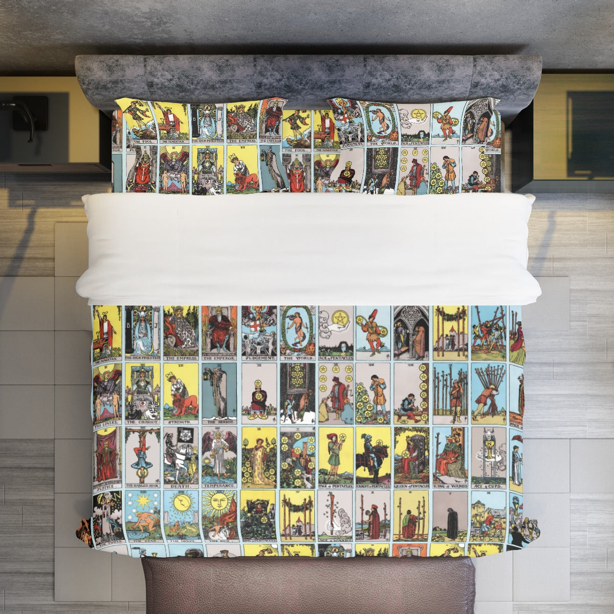 🔮 Tarot Card Patchwork Bed Set | Y2K Witchy Bedding | Fortune Telling Quilt Style Duvet Cover | Mystic Room Décor