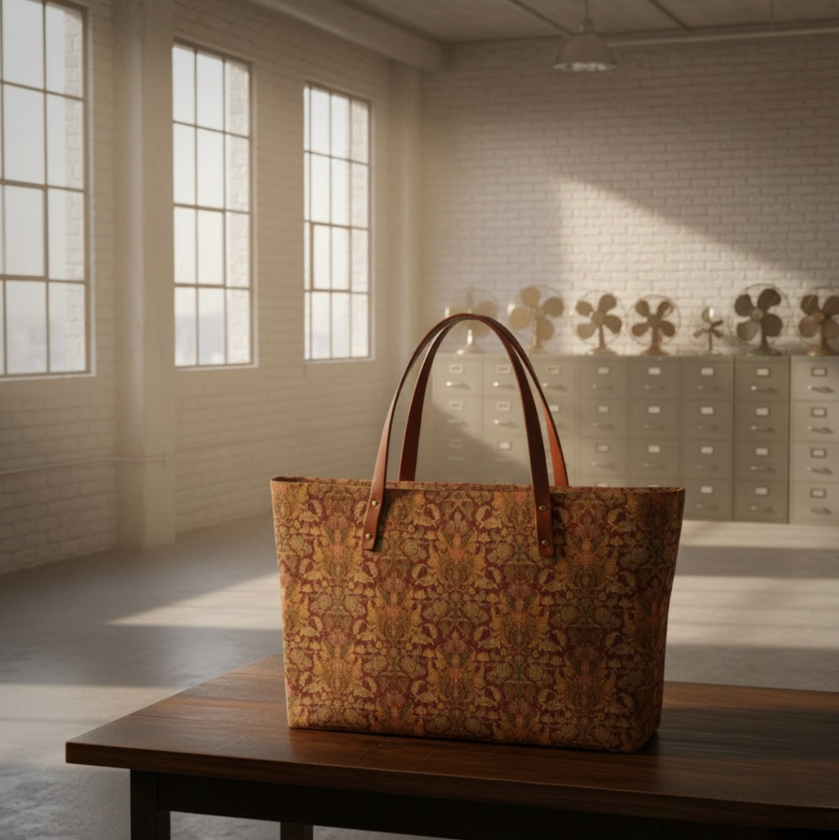 This large-capacity handbag features an exclusive pattern inspired by the unforgettable lobby wallpaper of the McKittrick Hotel — home of Sleep No More. Rich baroque motifs, atmospheric tones, and the iconic micro-seams found in the real wallpaper all come together to create a piece that feels like it was lifted directly from the hotel’s dimly lit halls.