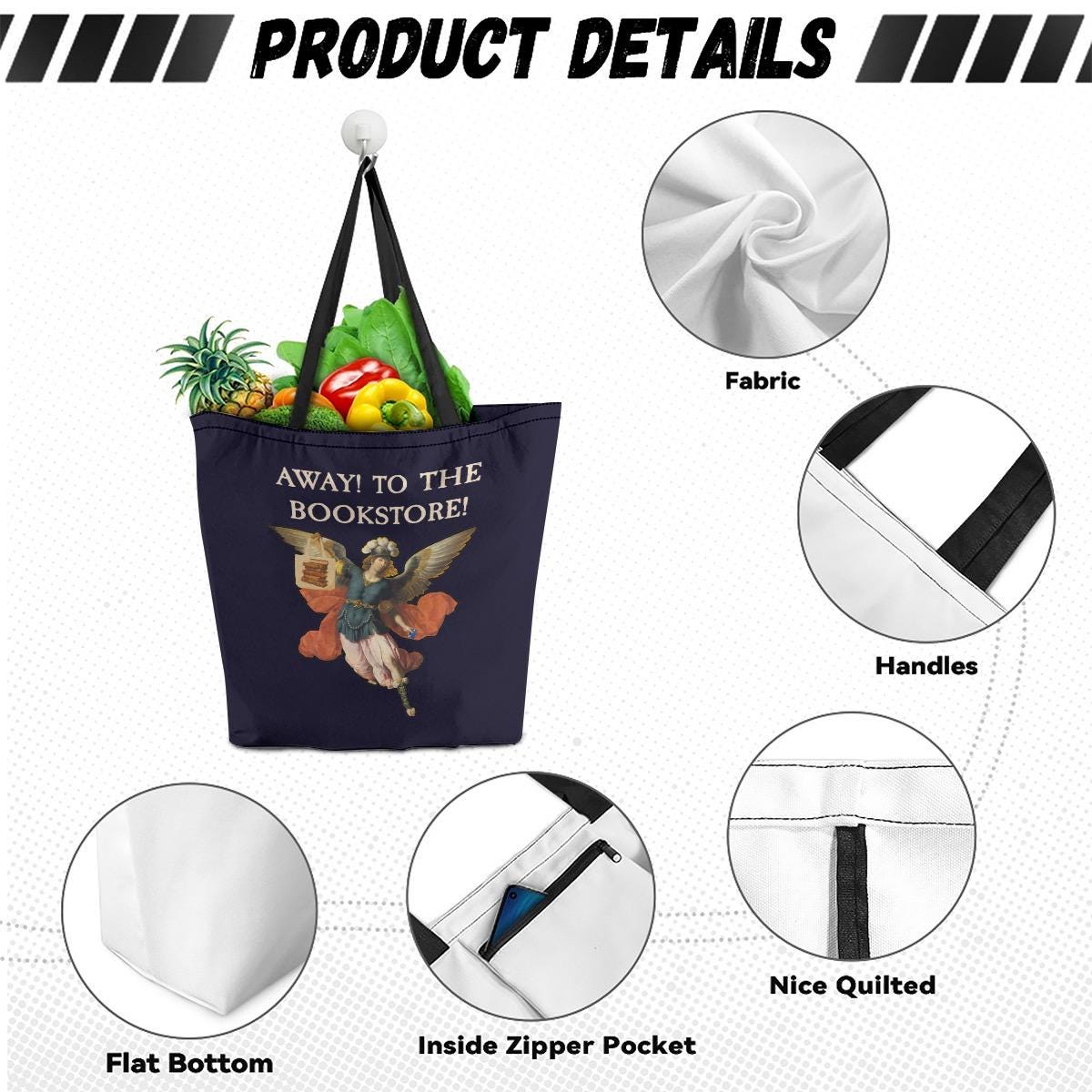 Rococo Book Lover Canvas Tote Bag: 'Away! To The Bookstore'
