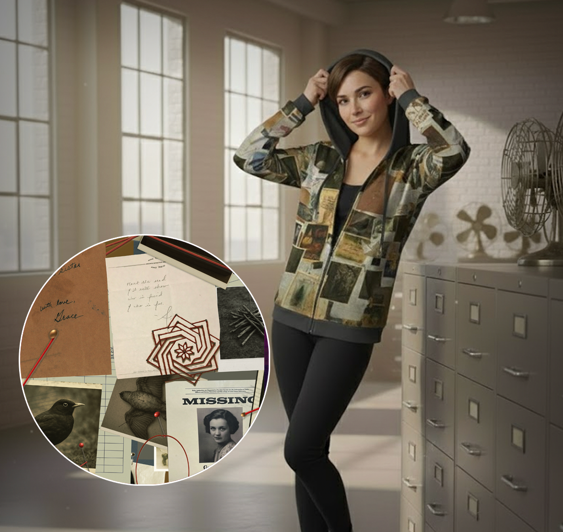 The McKittrick may be gone, but Malcolm’s crime wall lives on — at least our version of it does. This hoodie is a love letter to the evidence boards, cryptic symbols, and ephemera woven throughout the world of Sleep No More. Fans will instantly recognize the references tucked throughout the design… if they can find them all.