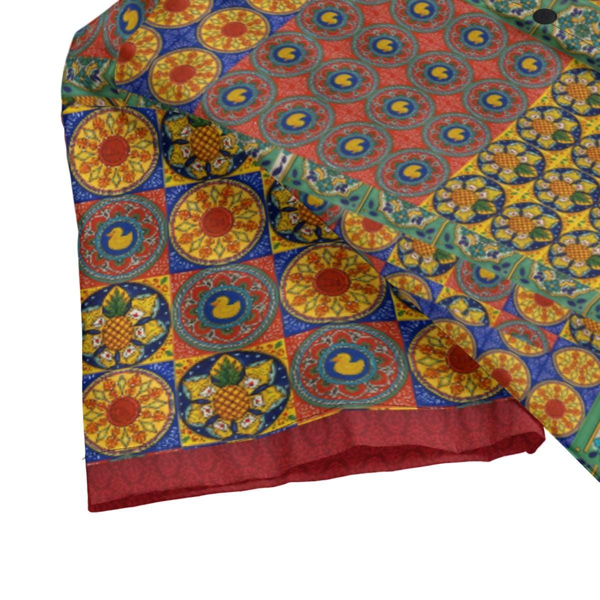 Taskmaster Inspired Hawaiian Shirt: Majolica Tile Print, Duckie & Pineapple