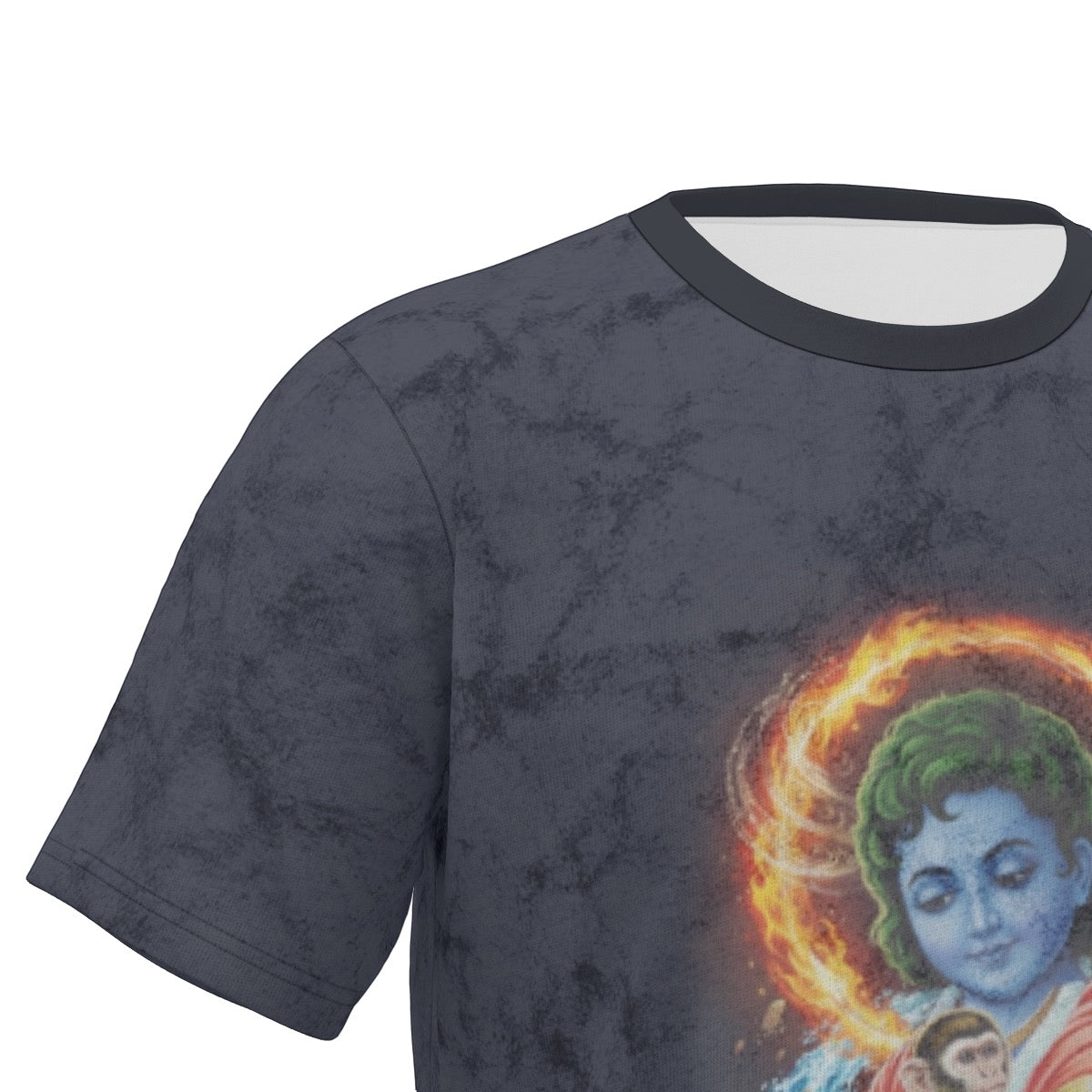 This exclusive design reimagines the beloved cartoon hero Captain Planet in a Retro Indian Calendar Art Style — an aesthetic celebrated for its vibrant colors, glowing halos, and cinematic romanticism. Our young captain stands amidst swirling elements of earth, fire, wind, water, and of course he loves his companion with all of his heart.