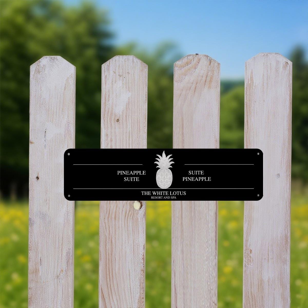 white lotus pineapple sign, white lotus party decor, pineapple suite sign, bachelorette party sign, white lotus wedding sign, aluminum door sign tropical, white lotus inspired party, resort themed party decor, funny white lotus gift, luxury tropical sign, white lotus room decor, tv themed party sign, the white lotus inspired gift